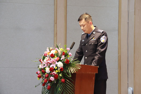 表彰環(huán)節(jié)過后,市公安局治安警察支隊(duì)副支隊(duì)長陳黎明在會(huì)議發(fā)表了講話,他對協(xié)會(huì)第二屆會(huì)員大會(huì)的順利召開和受表彰的單位、個(gè)人表示衷心的祝賀,同時(shí)他也肯定了協(xié)會(huì)四年來所做的貢獻(xiàn),并對協(xié)會(huì)和各保安從業(yè)單位提出了加強(qiáng)行業(yè)協(xié)會(huì)自身建設(shè)、加強(qiáng)保安服務(wù)的企業(yè)建設(shè)、加強(qiáng)保安行業(yè)的基礎(chǔ)建設(shè)等方面的工作意見和殷切期望。